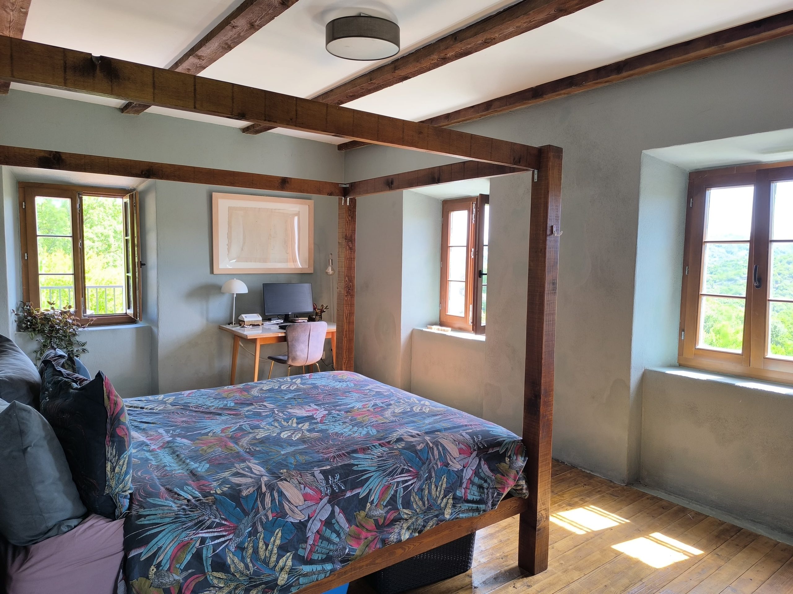 Designed by an architect, the house layout includes a luxury bathroom and a separate toilet, a mezzanine ideal for a second bedroom. It also features a large room downstairs with lots of authentic charm converted into a music/entertainement room.